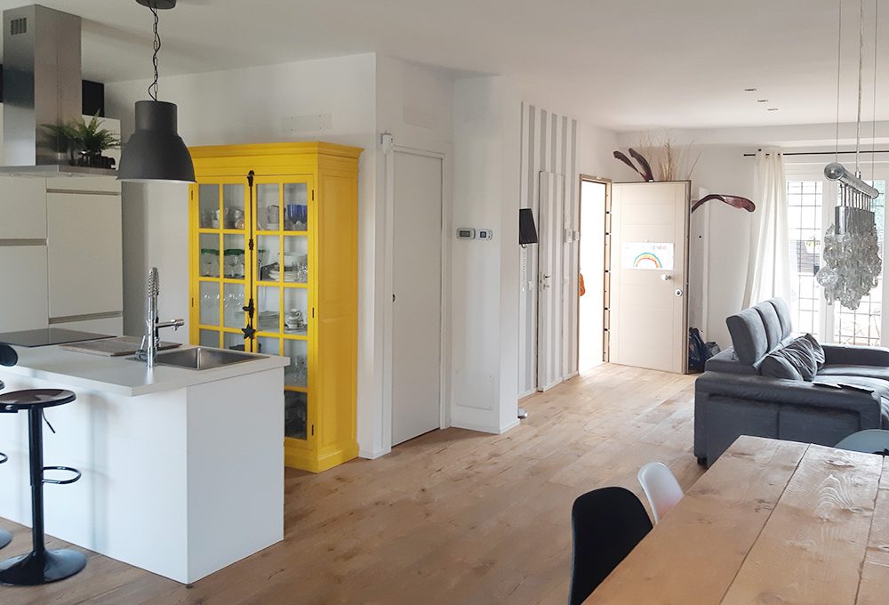 L'idea in più: si può ‘arredare’ a cominciare dai materiali: stucco al posto della pittura, piastrelle sfumate e un parquet raw.