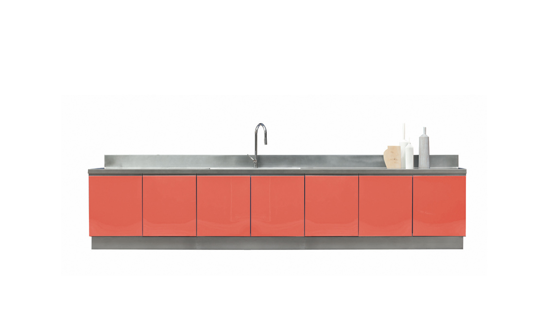 Cucina in acciaio con top e ante personalizzabili nei materiali e nelle finiture di colore, Abimis.