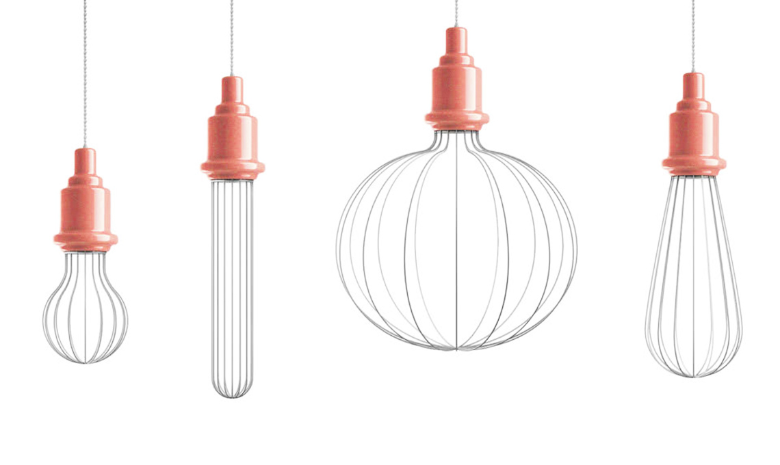 Lampade a sospensione della collezione Edison in metallo e ceramica, Marioni (da €630).