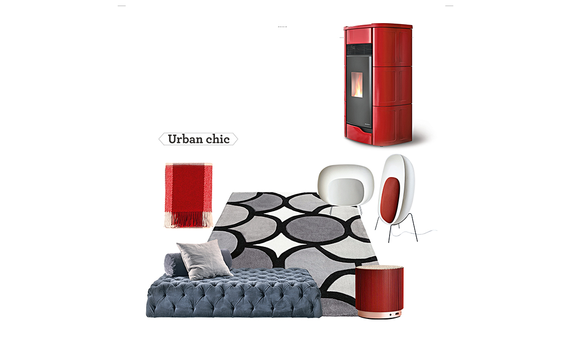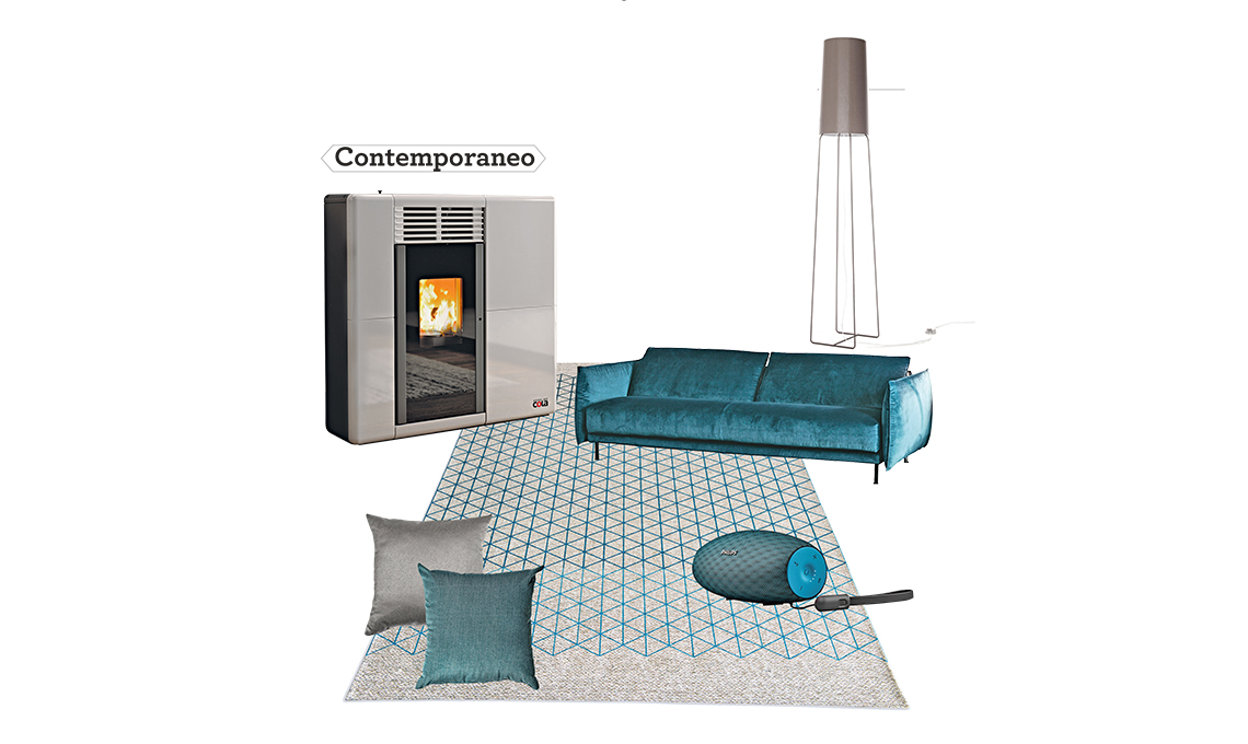 Oggi stufe a pellet e camini a legna sono veri complementi d'arredo di design. Qui proponiamo 6 stufe/camini e 6 stili di arredo in cui ambientarli. Ogni "moodboard" compone una vera e propria "comfort zone", un angolo relax dove al calore del fuoco si aggiungono stile e atmosfera, ma anche complementi per stare bene: dal plaid al tappeto, all'amplificatore per la musica... Ecco, stile per stile, info, misure e prezzi di tutti gli arredi e accessori che trovi nella gallery.