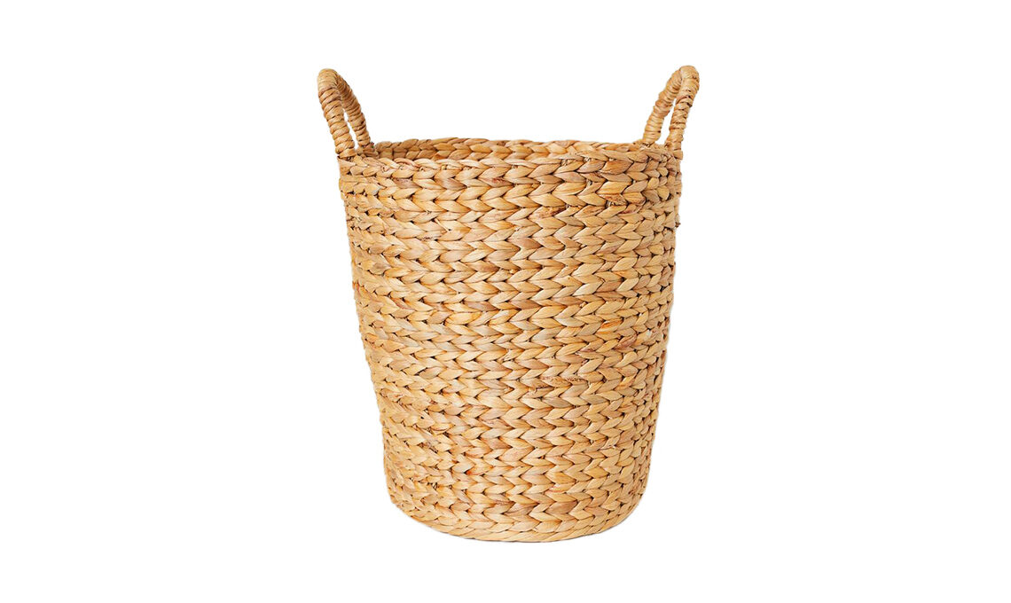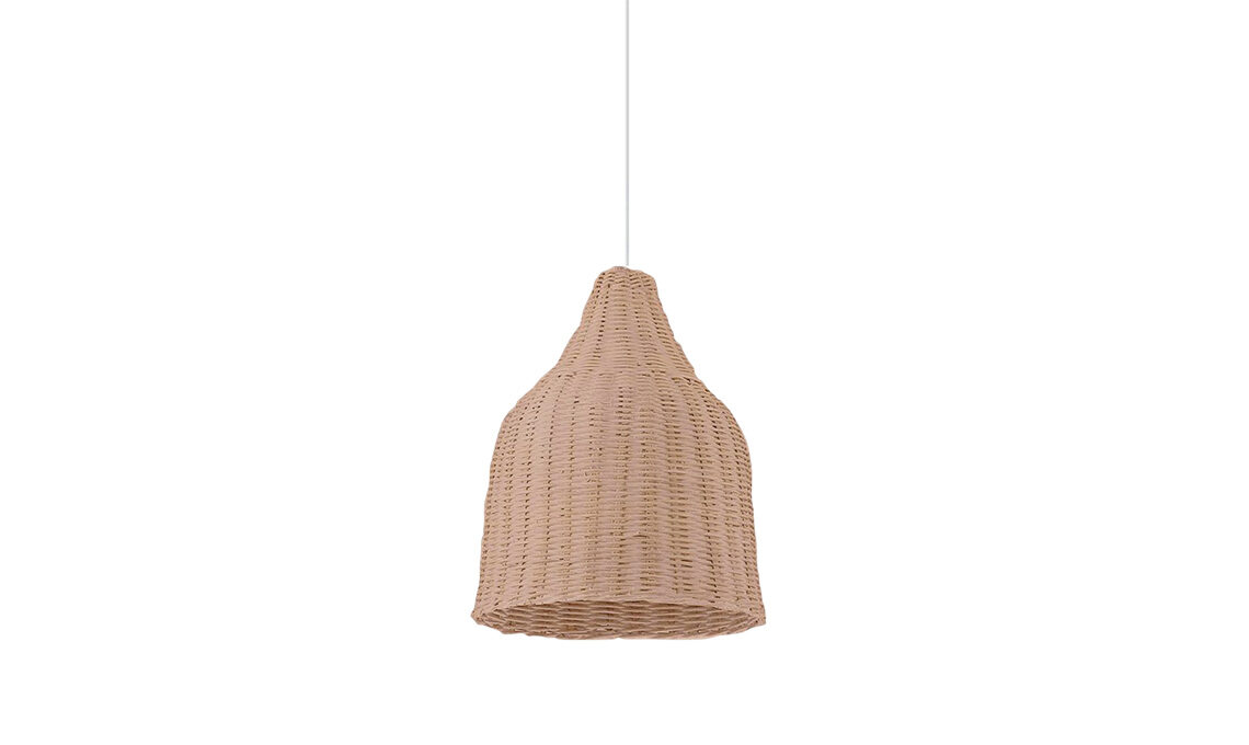 Con diffusore in vimini naturale intrecciato la lampada Haunt [Ideal Lux, ø cm 35x51h € 166].