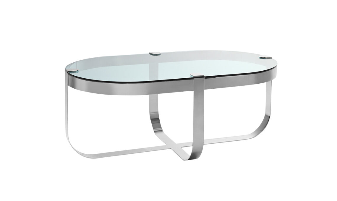 Metallo cromato e vetro temperato per il tavolino Ring [Saba Italia, cm 100x58x40h € 1.266].