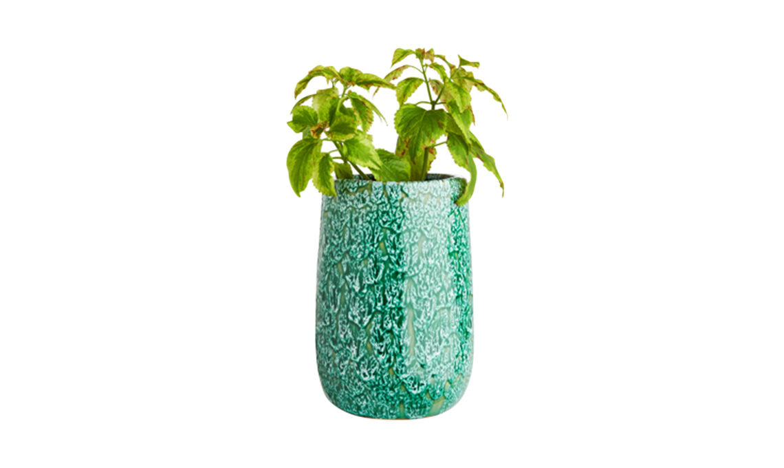Nelle sfumature del verde il vaso da interno Seagrass in ceramica [Serax, ø cm 18x24h € 25].