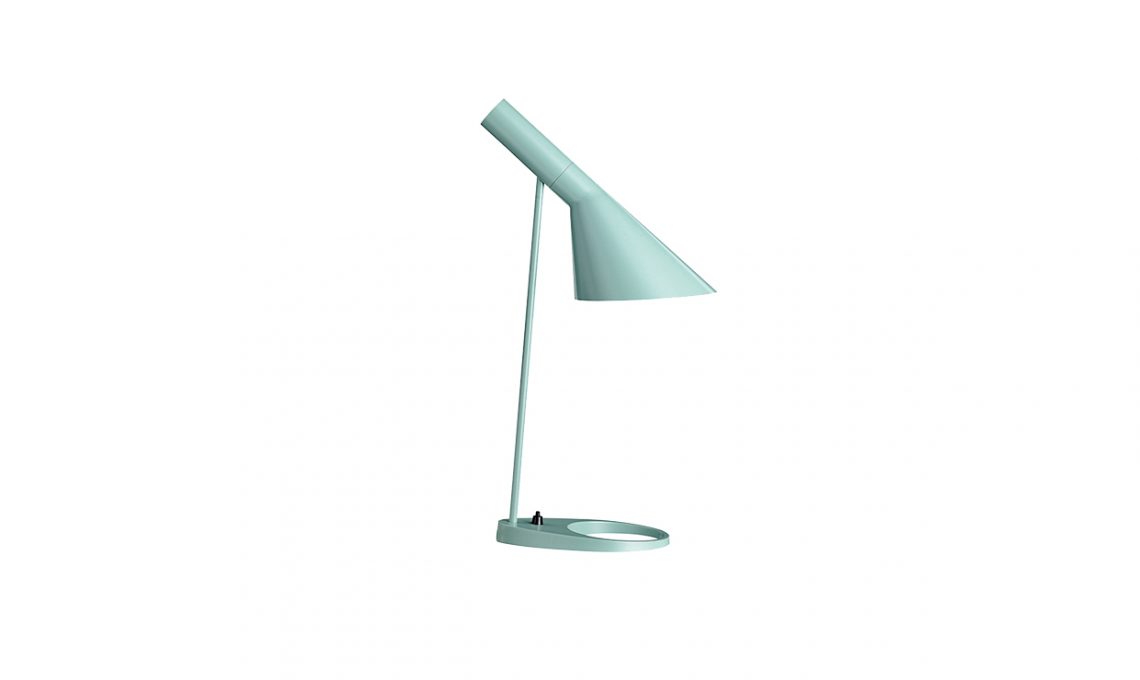 Lampada da tavolo AJ di Arne Jacobsen in edizione speciale a colori per il 50° anniversario [Louis Poulsen, cm 35x56x21,5h €675].