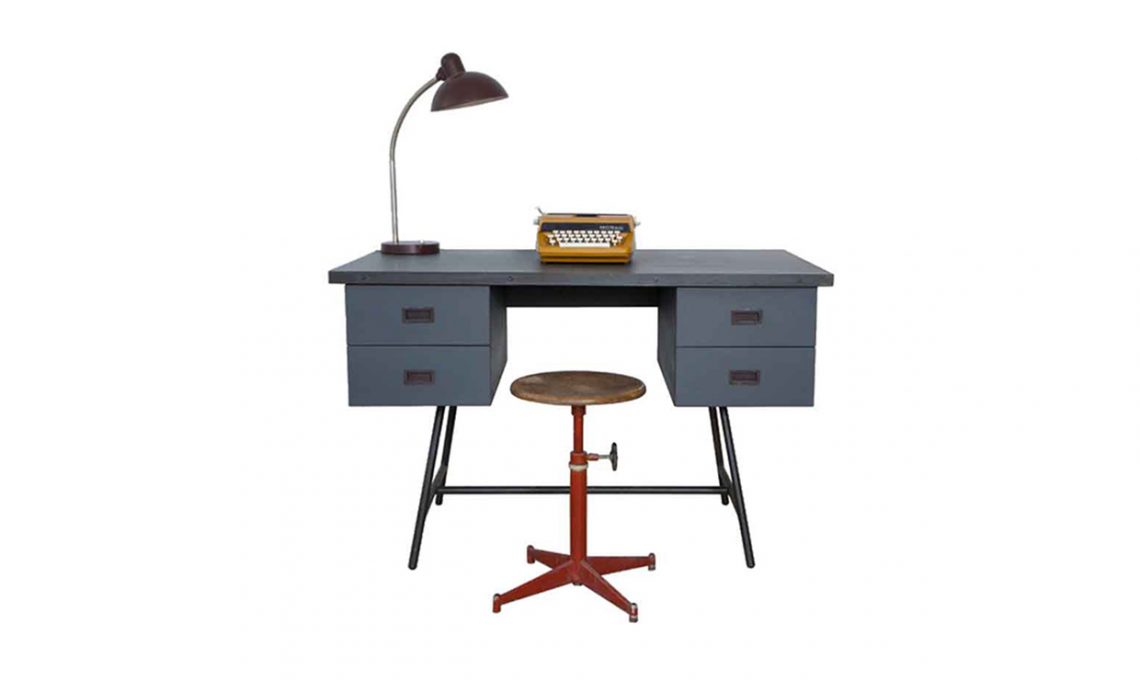Scrivania rétro Le Bureau L50 con cassetti in acciaio e piano in legno [Le civette sul comò, cm 120x67x76,5 €915].