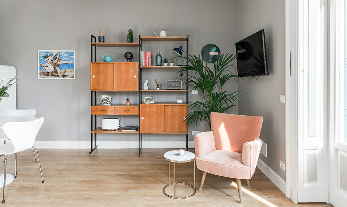 Andrea ha iniziato 5 anni fa da un monolocale: 42 mq ristrutturati e arredati da lui. A guidarlo, l’amore per il design e la voglia di creare un posto dove ospitare chi, come lui, ama il bello.