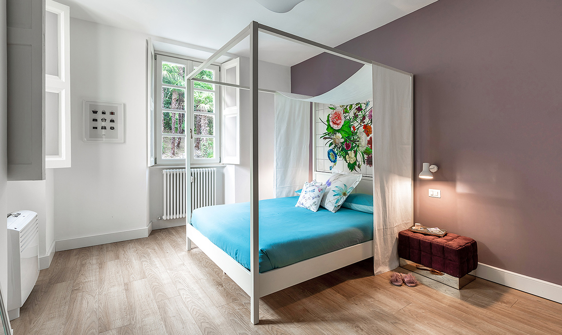 Ora l’ospitalità è il suo lavoro ufficiale e gli appartamenti sono diventati tre, tutti nello stesso stabile storico. Andrea ha creato ambienti ben distinti, aperti alla luce e alle viste del lago; ha scelto stili diversi e grande coerenza di materiali, colori e arredi. Il suo consiglio è: funzionalità senza mai dimenticare lo stile!