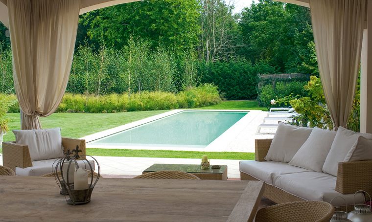 Per la zona living in giardino è ideale la copertura a vela [Obi, cm 400x400 € 49,95].