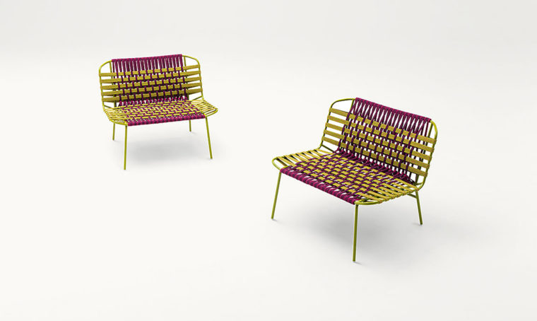 Ha all’interno un set di posate per due il cestino da picnic in ferro rivestito in tessuto [Kasanova € 60].