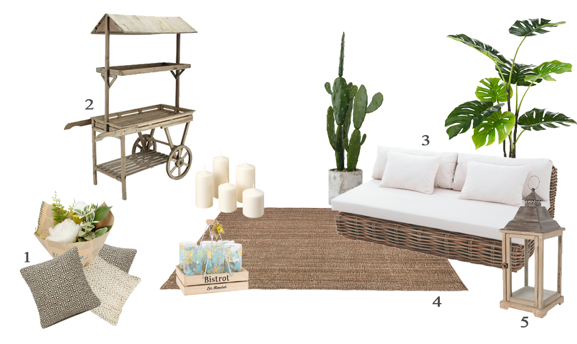 A differenza di altri stili, quello country si arricchisce anche di numerosi oggetti e complementi d’arredo che servono a ricreare l’atmosfera di campagna tipica dello stile inglese. Quindi non abbiate paura di eccedere ed iniziate a collocare nello spazio soprammobili, vasi con piante fiorite, vassoi ed oggetti risalenti ad epoche passate che doneranno ricchezza e confort al terrazzo coperto. Siete degli inguaribili romantici? Le candele, le lanterne e le fiaccole non potranno mancare, contribuendo a rendere il quadro ancora più campestre e familiare.