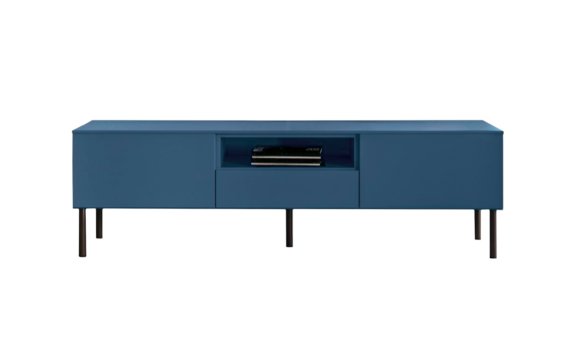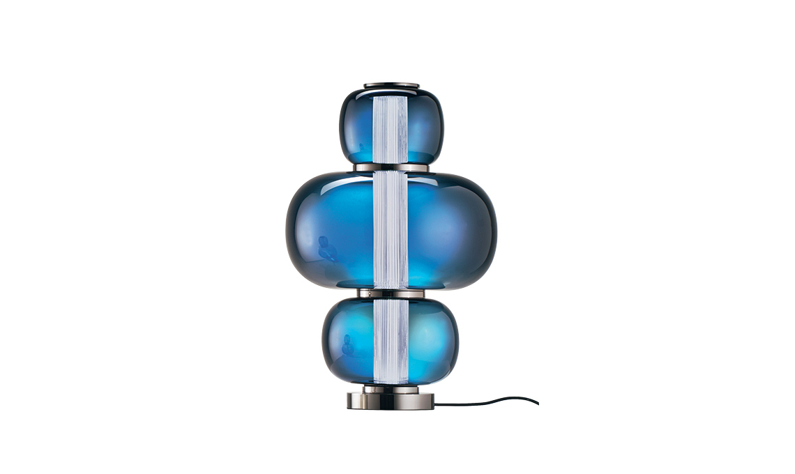 Le diverse sfumature del blu (che è il colore più rilassante) rendono ancora più confortevoli le forme morbide degli arredi di ispirazione Fifties, perfetti da abbinare a elementi dalle linee nette e dai materiali più attuali. A fare da trait d’union c’è il pavimento in graniglia.