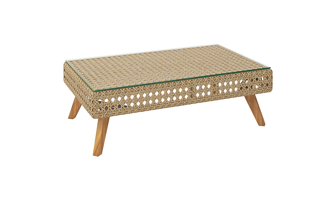 Tavolino Round, con struttura in ferro e seduta in tubi di PE intrecciati, più piano in vetro [Coincasa, cm 73x45x80h].