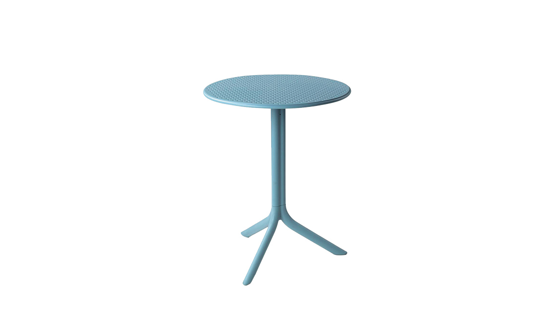 Tavolino Round, con struttura in ferro e seduta in tubi di PE intrecciati [Coincasa, ø cm 50x50h].