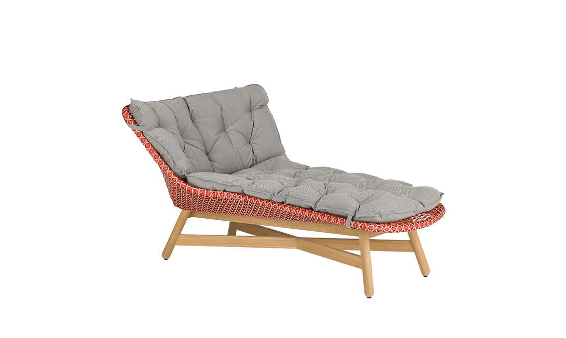 Daybed in teak e corda con materassino sfoderabile, Mbrace [Dedon, cm 159x106x80h da € 2.100].