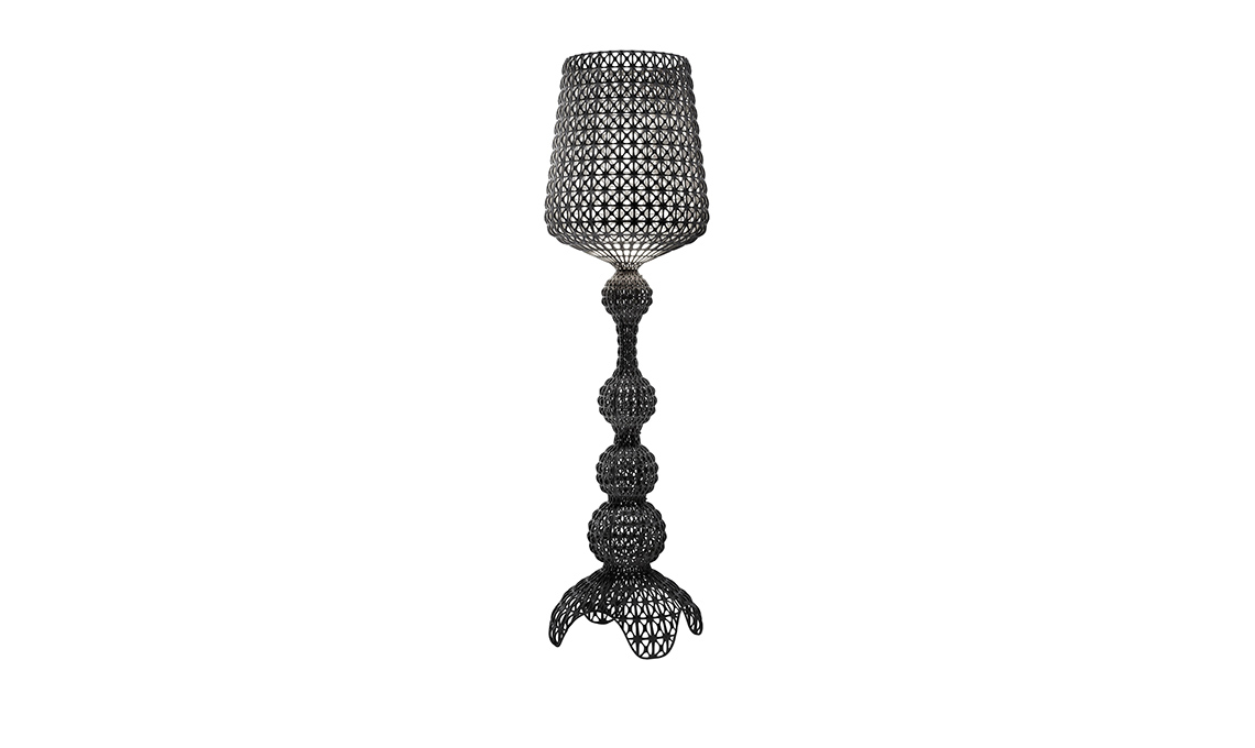 Lampada da terra a Led in materiale plastico effetto crochet, Kabuki [Kartell, ø cm 50x166h € 872].