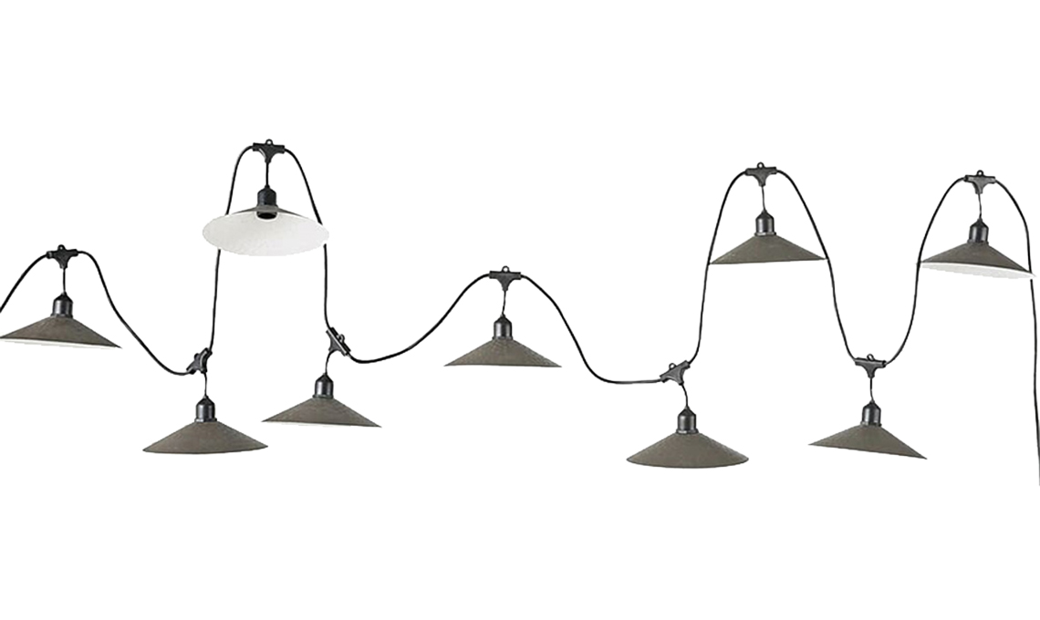 Ghirlanda luminosa in stile industriale con 10 paralumi, Cavaillon [Maisons du Monde € 79,99].