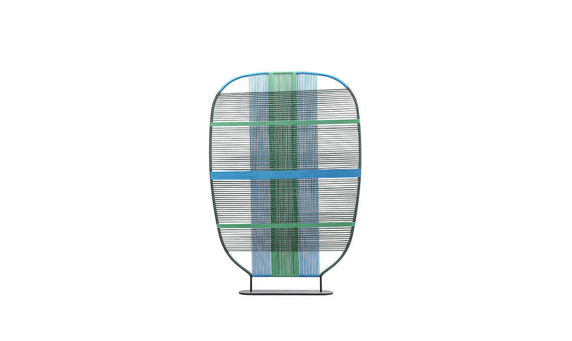 Paravento realizzato con corde nautiche intrecciate nei colori della laguna, Shades of Venice [Saba Italia, cm 130x21x140h da € 2.263].