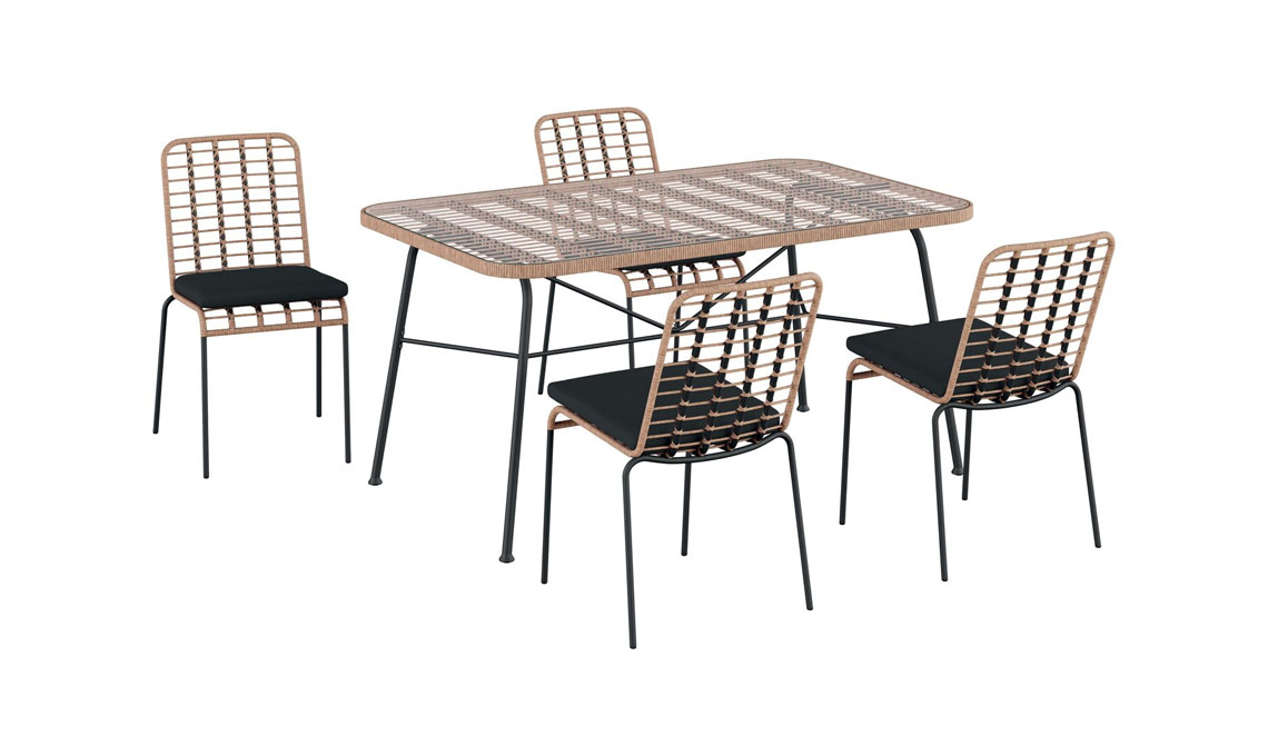 Set tavolo + 4 sedie in rattan sintetico con top in vetro temperato [OBI]