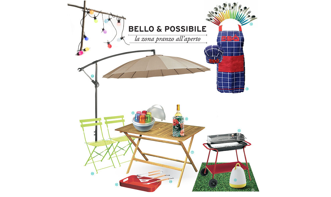 Non dimenticare gli ingredienti essenziali per la zona pranzo outdoor: un tavolo allungabile, le sedie pieghevoli, l’ombrellone, stoviglie, lucine e naturalmente il barbecue. La spesa totale è €730,401