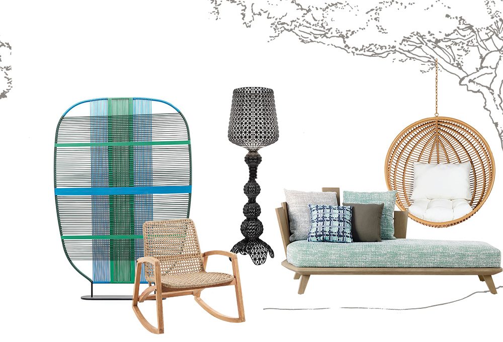 Per mangiare all’aperto i segreti del comfort sono due: una pergola che ripari dal sole e un tappeto per portare fuori il piacere di... camminare scalzi!