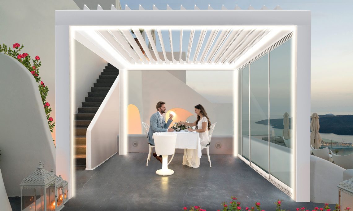 Ami cucinare all’aperto? Prevedi un barbecue e un forno multiplo. Per proteggerti dal sole e dalla pioggia, scegli una pergola con le lamelle orientabili. Chiuse proteggono dalla pioggia, aperte da 0° a 140° regolano direzione e intensità della luce.