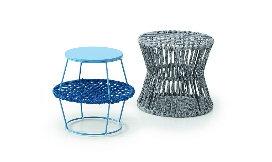 Pouf Clessidra Ziggy [ø cm 44x32x40h €671] e tavolino Botte Ziggy [ø cm cm 32x44x40h €364 di Saba Italia]