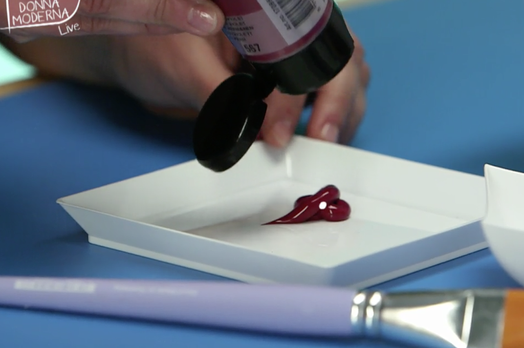 - É il momento di divertirsi con il colore: metti dell'acrilico in un piattino e diluiscilo con l'acqua.