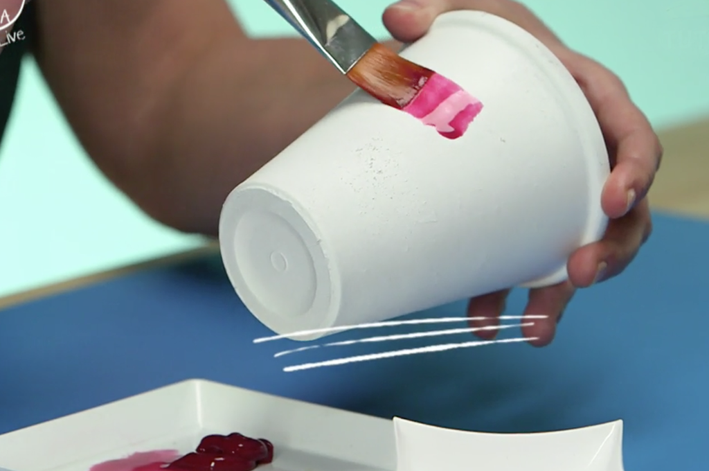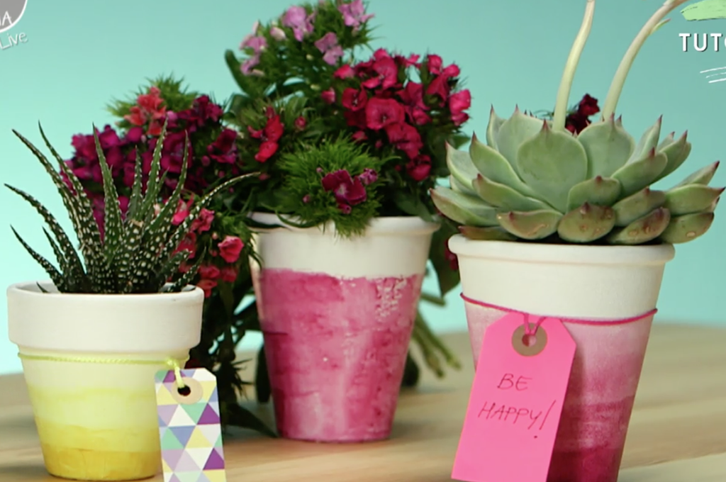 Un semplice tutorial di Elisabetta Viganò per DonnaModerna Live per decorare vasi in terracotta con colori sfumati.