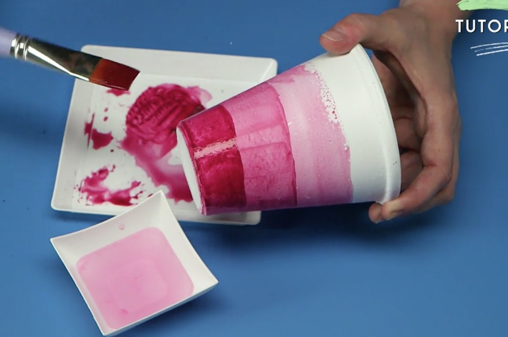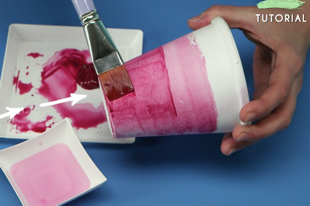 - Dopo aver lasciato asciugare nuovamente la pittura, passa all'ultima sfumatura sul fondo del vaso.