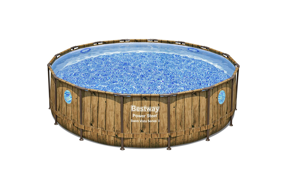 Fuoriterra fai-da-te. Dotata di uno speciale rivestimento a 3 strati rinforzato contro le forature e del sistema Seal & Lock System, la piscina Power Steel Swim Vista Series II di Bestway® si monta da sé senza particolari attrezzi. A rendere più divertenti i bagni, 4 oblò trasparenti rinforzati sui lati [OBI Italia, ø cm 488x122h €699].