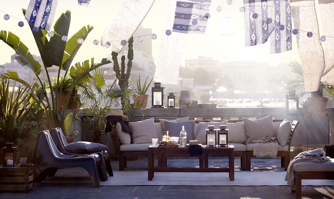 Spazi mini? Abbina un divanetto fisso a tripoline pieghevoli da aprire quando serve o a sedute jolly in&out (per esempio i pouf in tessuti outdoor) che puoi passare da dentro a fuori. Su un balcone stretto e lungo, opta per due poltroncine sui lati corti, disposte frontalmente.