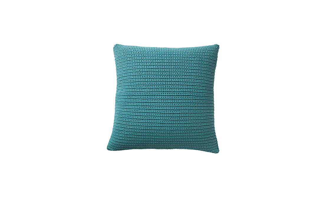 I complementi décor: Effetto tricot per la fodera da cuscino per esterni Sötholmen di Ikea. Vaso in ceramica Block Print con fantasia geometrica rossa di Zara Home. Canestri artigianali fatti in Zimbabwe di Zoco Home. Tappeto handmade in canapa, Tres Vegetal id Nanimarquina. Tavolino basso Net, con piano forellato, in fiberglass anti-UV di Nardi.