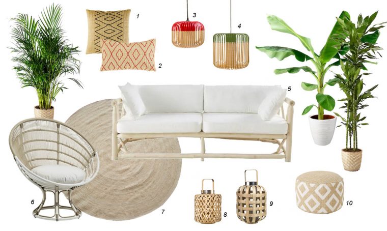 Sdraio dondolo Beach Rocker [Weltevree, cm 55x105x 87h], parasole Beach Floral Pistachio [HKliving, ø cm 200x200h].