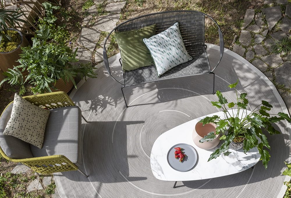 Sistema di copertura Komodo Ombra con telo Velo, qui applicato alla seduta Komodo [Nardi, cm 165x92,5x187,5h].
