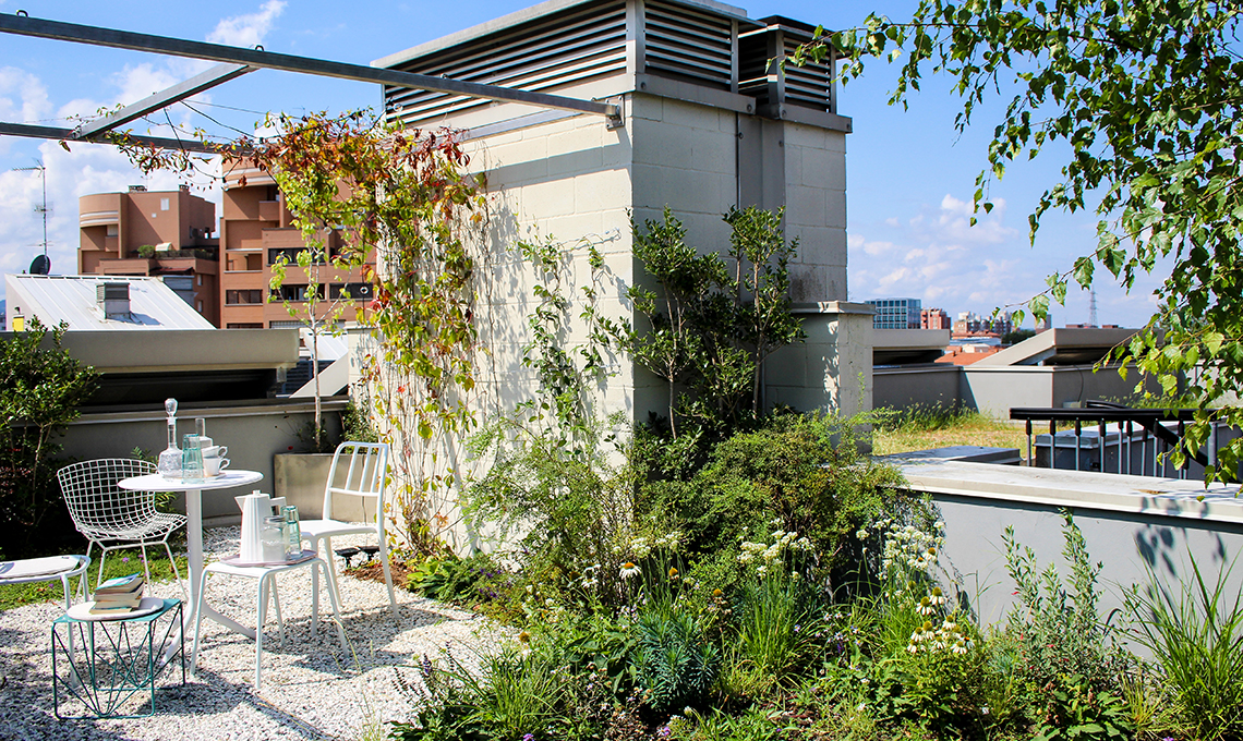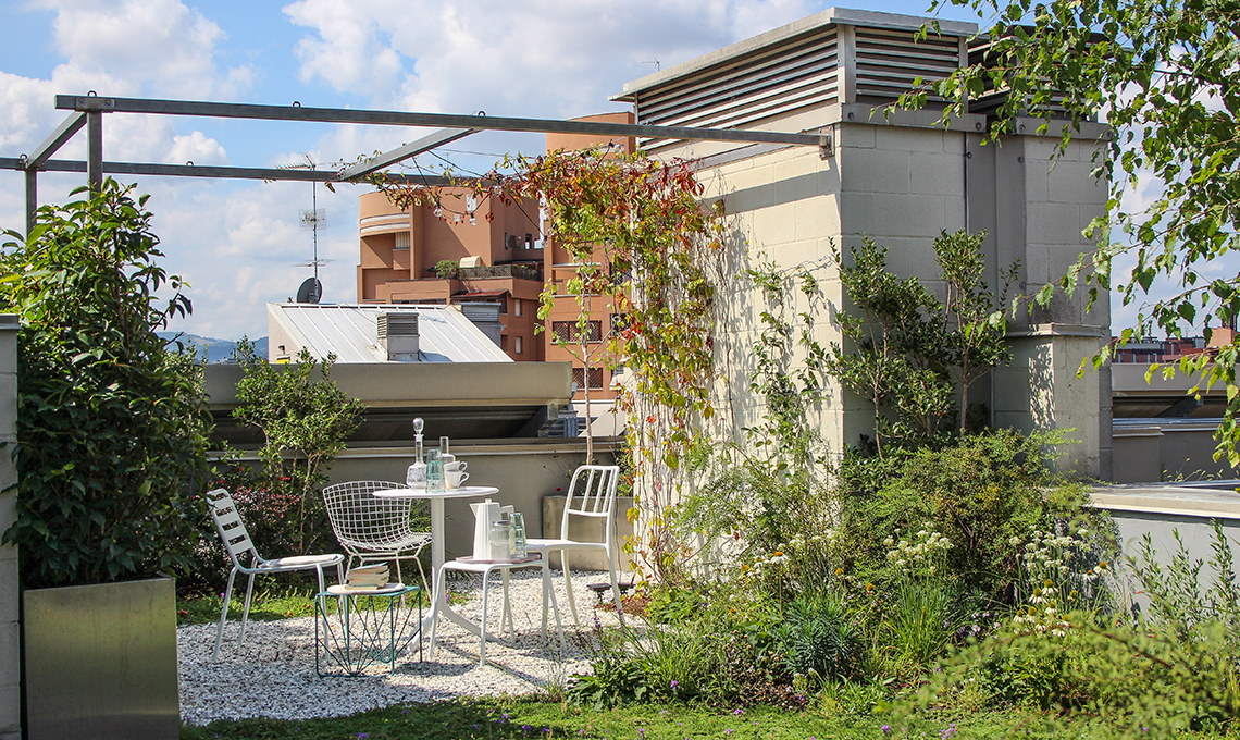 Per trovare uno spazio verde ho rivolto lo sguardo al cielo... e ho deciso di valorizzare il tetto del mio bilocale! Con l’amico architetto Michele Malagoli, paesaggista per passione, abbiamo definito le priorità: un’area verde a bassa manutenzione, risparmiare acqua, schermare lo spazio dal vicinato.