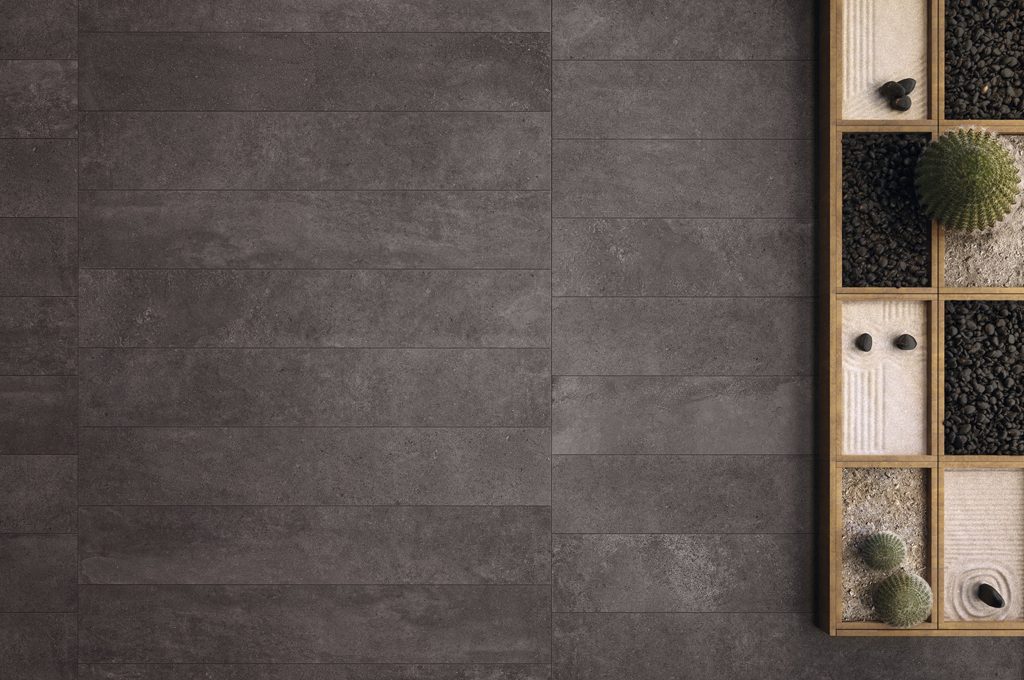 Dona l'effetto della pietra tagliata a spacco la mattonella Ginevra da accostare in composizioni sempre diverse [Valpietra prezzo da rivenditore].