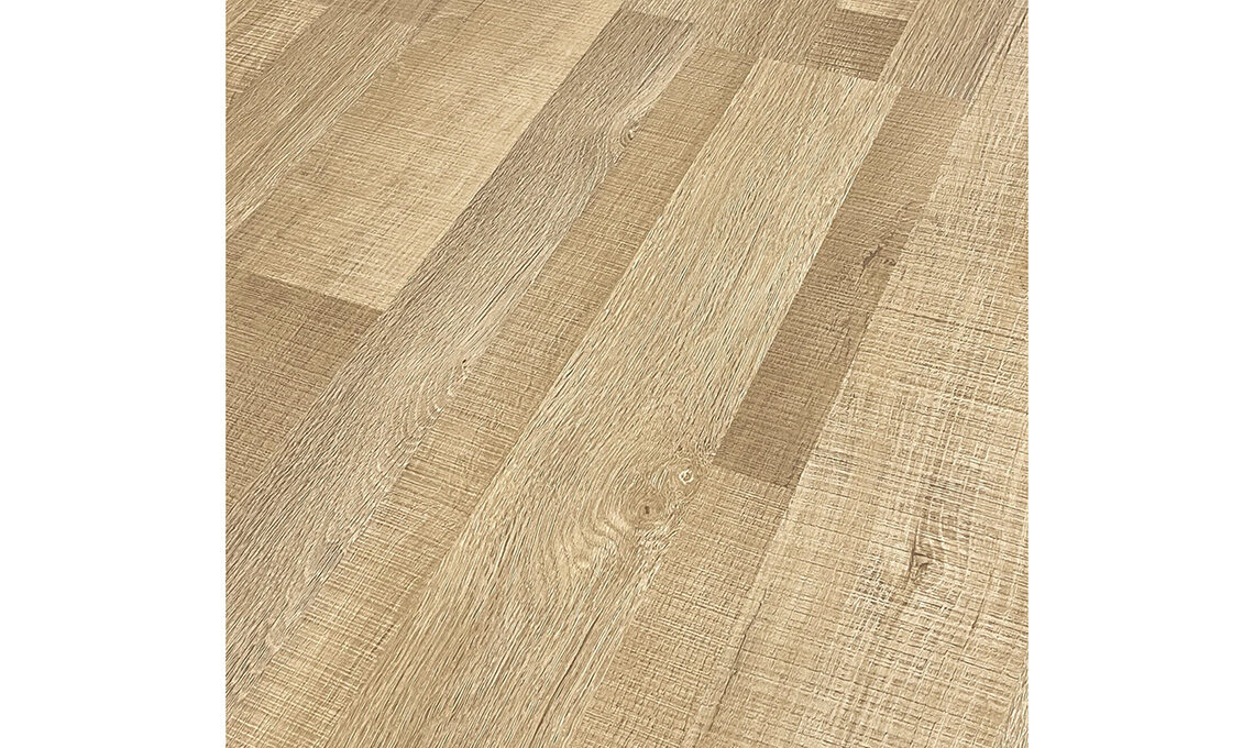 Pavimento in spc, stabile, resistente all’umido e ignifugo, è spesso solo 3,2 mm e si posa a incastro anche su superfici esistenti [Leroy Merlin, cm 18x122 €14,99/mq].