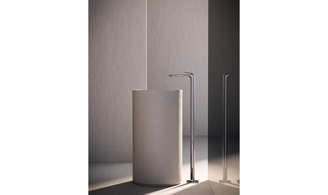 FOIL è il miscelatore monocomando lavabo a pavimento, finitura cromo che consuma al massimo 5 litri al minuto [Cristina Rubinetterie, prezzo dal rivenditore].