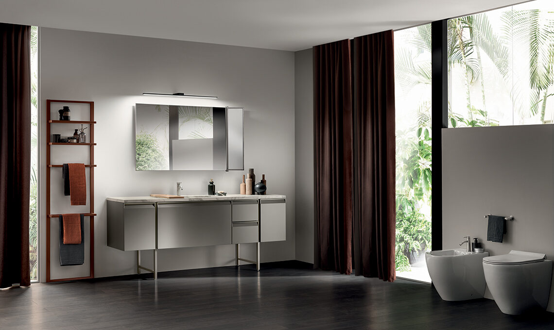 Total Look versatile. Ogni bagno deve avere un fil rouge che gli regali una sensazione di armonia. È una questione di linee, materiali e colori. Ideale scegliere un sistema componibile per creare soluzioni personalizzate con gli stessi elementi di base.