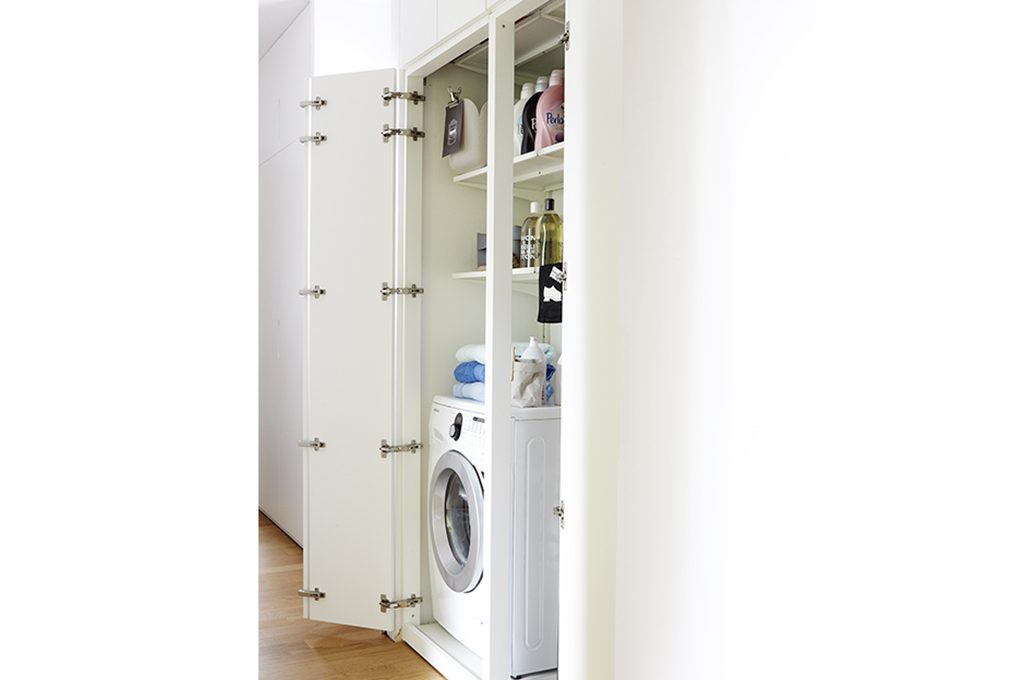 Contenitori bianchi e superfici chiare possono fare miracoli nei piccoli spazi. Usali per nascondere le strutture contenitive e mimetizzarle con le pareti.