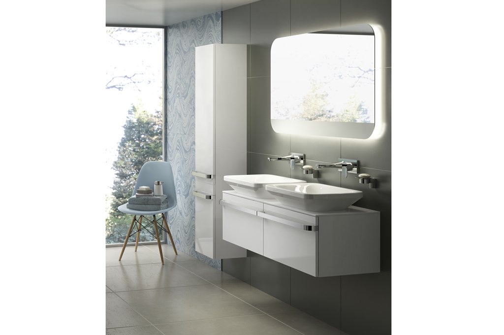 Per non litigare c'è il mobile laccato lucido con doppio lavabo della serie Tonic II: piano in vetro, cassetti a chiusura rallentata e nuovo sifone salvaspazio Idealflow che garantisce fino al 20% di spazio in più a disposizione [Ideal Standard, cm 120x50 prezzo da rivenditore]..
