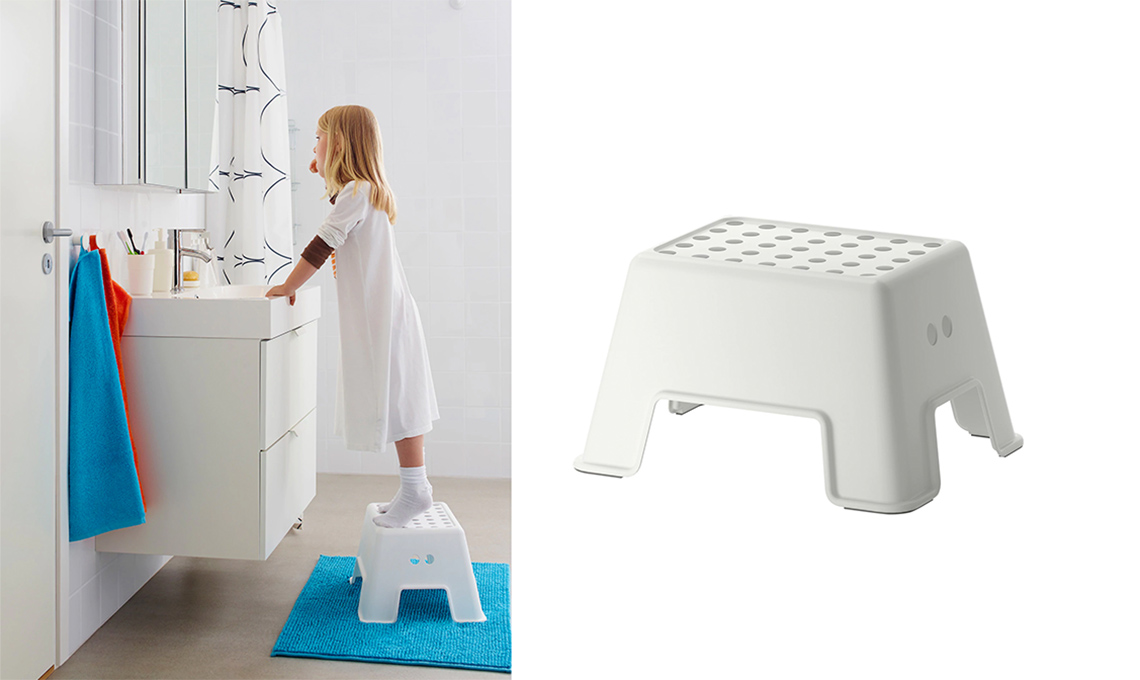 Il bambino non deve avere problemi di altezza, è indispensabile prevedere uno sgabello /scaletta per arrivare comodamente al lavabo. Allo stesso modo, sapone, spazzolino e dentifricio devono essere facilmente raggiungibili. Scegli un bicchiere personalizzato da usare durante l'igiene, per sciacquarsi i denti. Se c'è lo spazio, posiziona i ganci per gli asciugamani ad altezza bambino.