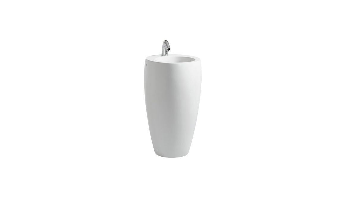 Ceramica colata in un unico pezzo con la tecnica fine fire clay per Tam Tam [Laufen, ø cm 53x90h €1.705].