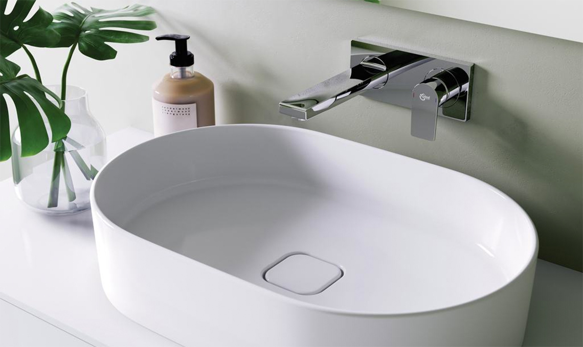 Che si scelga un lavabo poco profondo nel materiale composito più moderno o un semplice lavabo da appoggio, un miscelatore con installazione a parete renderà l’area del lavabo elegante e confortevole.