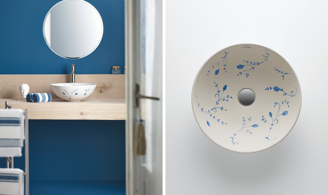 La collezione Atelier nasce dalla collaborazione di artisti multidiscipinari, sperimentando diverse tecniche artistiche sui lavabi in ceramica proprio come su tele bianche. Modello Rhodon, Bathco (prezzo su richiesta).