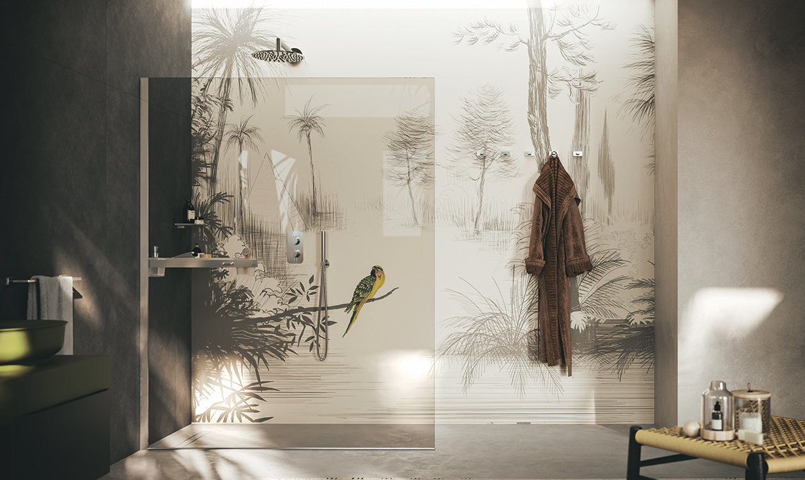 Minimale e funzionale. Chi non ama le docce walk-in, ampie e confortevoli, chiuse semplicemente da un vetro? Qui, lo spessore è di 8 mm ed è completato dalla mensola da cm 60x12 da accessoriare a piacere [Inda, cm 160x200h].