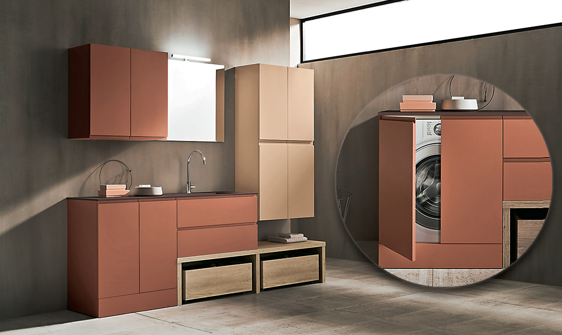 Per non avere la lavatrice a vista puoi installare un mobile lavabo dal design elegante, magari colorato, completo di modulo base chiuso da ante, che nasconda l’elettrodomestico.