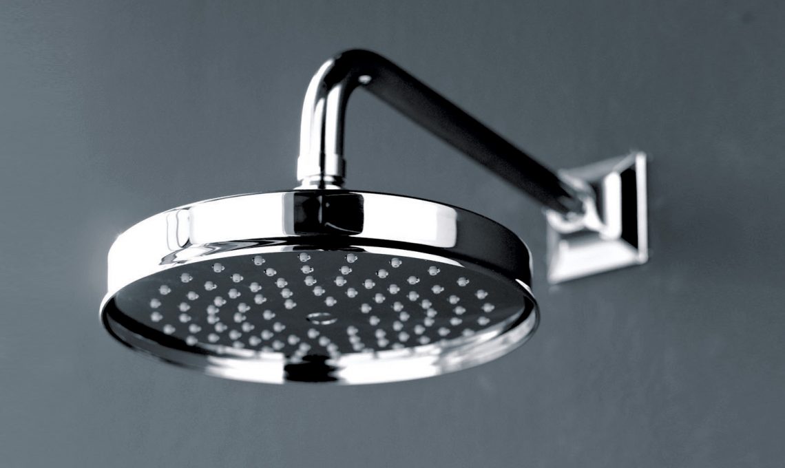 Con l’ampio getto di Idealrain consumi meno acqua (da l 12 a 8), senza ridurre il piacere della doccia [Ideal Standard, Ø cm 20 €287, braccio da parete €98].