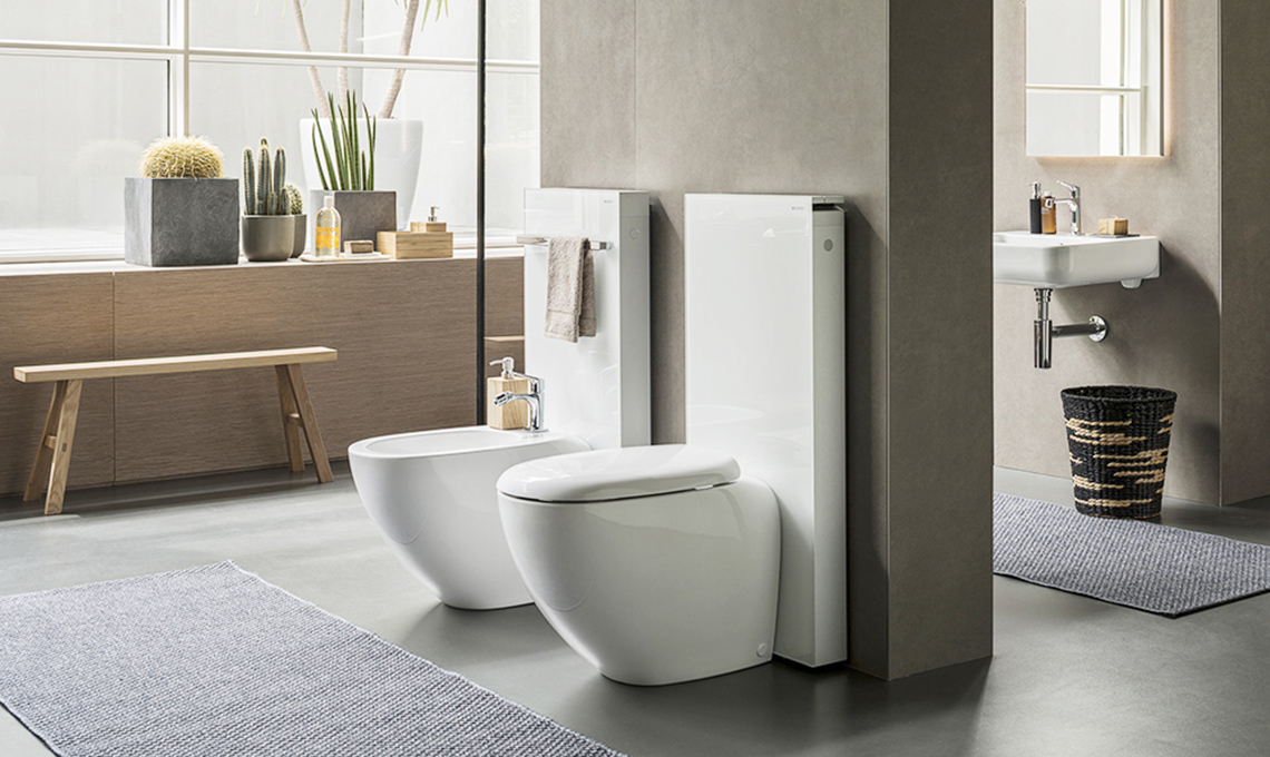 • I moduli di Geberit contengono gli allacci idraulici che ti permettono di cambiare i vecchi sanitari spostandoli fino a 13 cm.
