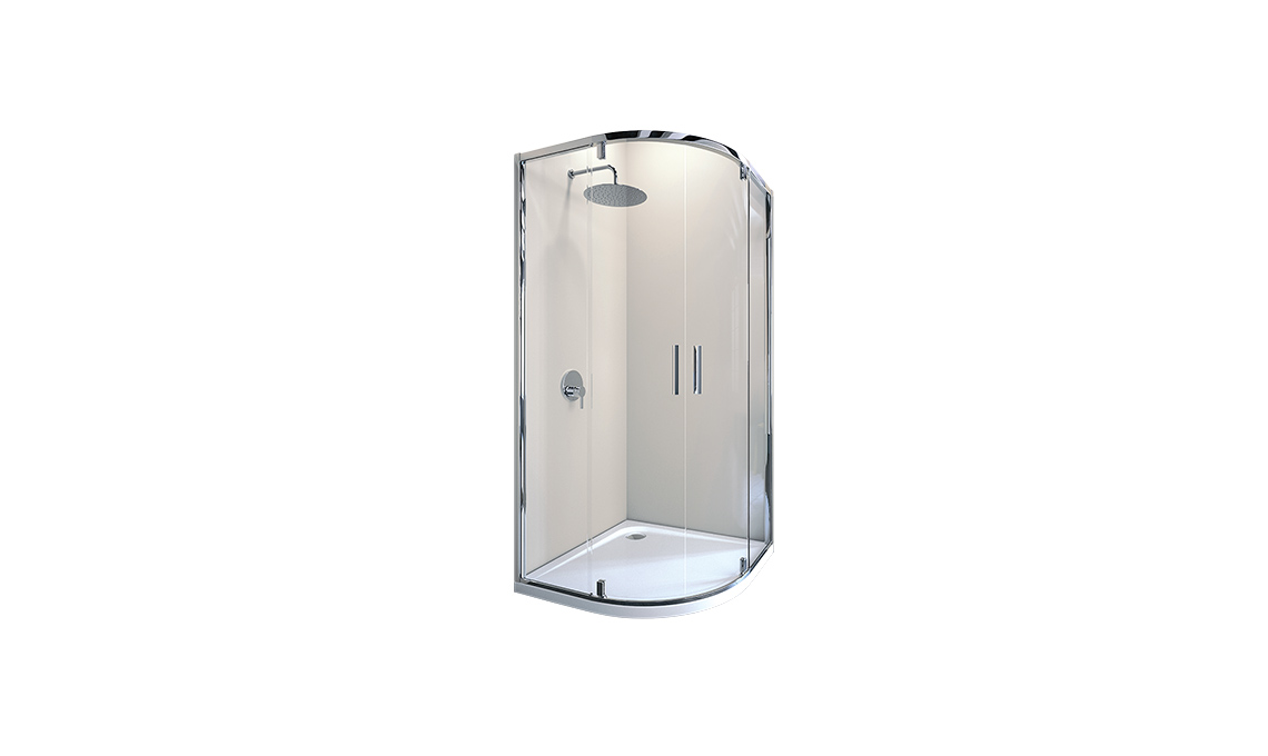 Cabina doccia Strada TD709EO angolare con apertura centrale e vetro da 6 mm [cm 80x80x200h € 2.137] con piatto Ultra Flat Acrilico [€ 263]. Soffione Idealrain Luxe [€ 620] e monocomando Neon [€ 203] di [Ideal Standard].